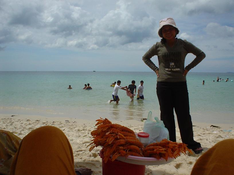 Sitting on the beach without food is impossible. So you buy crab. And then lobster. And then fruit. More fruit, a sarong. I see a great future for them as salespeople.