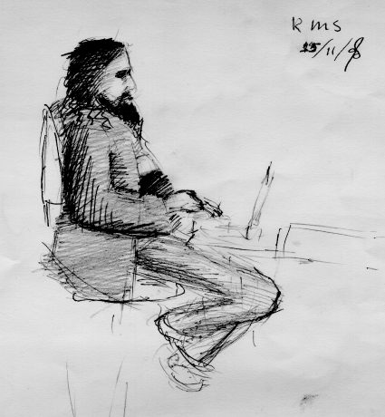 Richard Stallman answering email during a visit to Holland. November 15, 1998. The original (grayscaled from the color scan) is here.