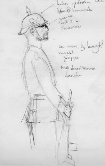 The royal palace is guarded by soldiers in bright blue uniforms. Unlike your average royal guard, these turned out to be normal people. Despite the helmet that reminds of 19th century German military, the guards seemed friendly and made an occasional chat with passing tourists. (The gun definitely was not looking friendly, though)
