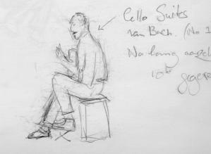 A man playing the guitar. He performed some parts of Bach's first Cello suite beautifully!