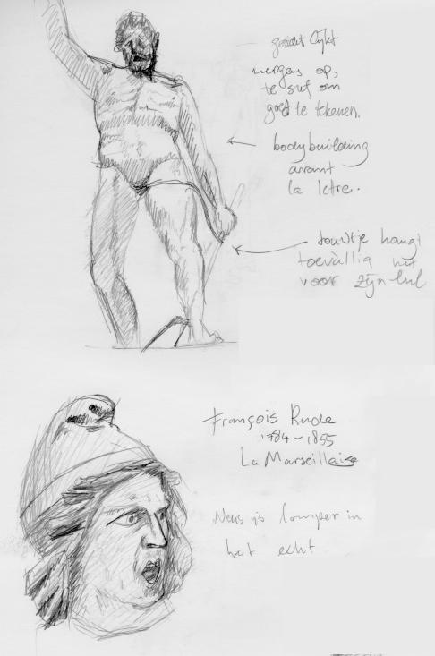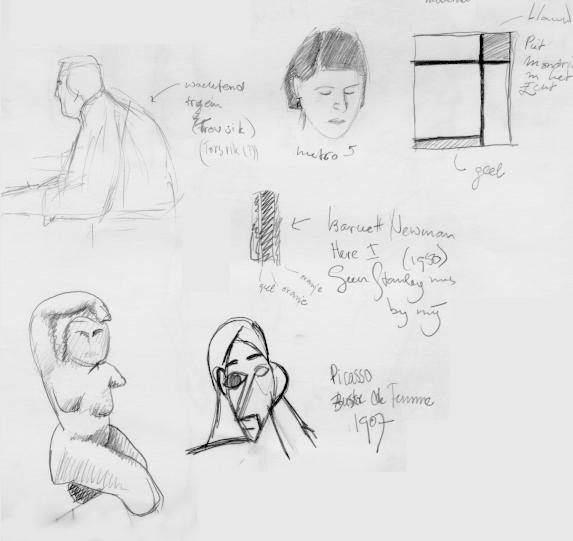 The modern museum contains a collection with all the big names in `modern' painting and sculpture. On the drawing:
